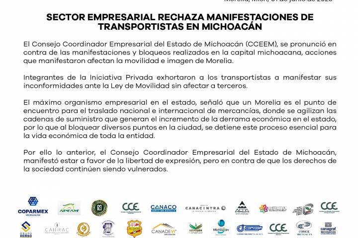 El Consejo Coordinador Empresarial del Estado de Michoacán (CCEEM), se pronunció en contra de las ...