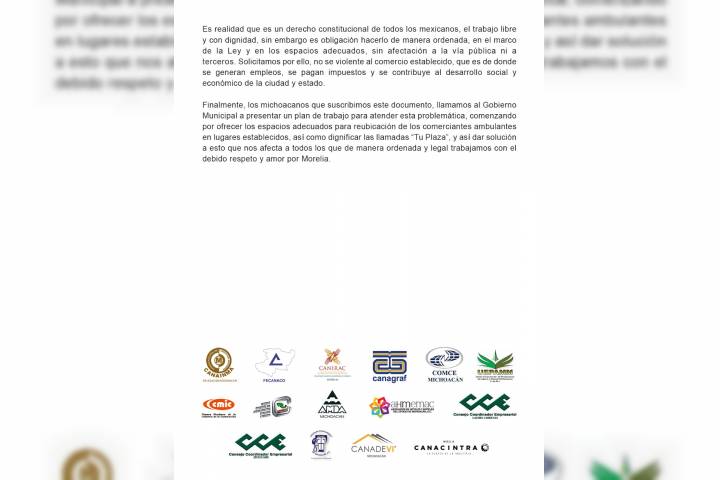Cámaras y organismos empresariales, asociaciones civiles y grupos organizados de Michoacán, extern...