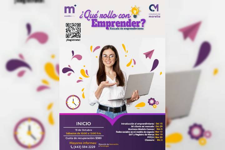 NOTICIAS 11/10/2022Ofrece Colegio de Morelia capacitación en emprendimiento a bajo costoCon la finalidad de continuar impulsando el emprendimiento en la capital michoacana y con ello mejorar la economía local, el Colegio de Morelia ofrecerá capacitación para las y los emprendedores a bajo costo en comparación con otras instituciones.