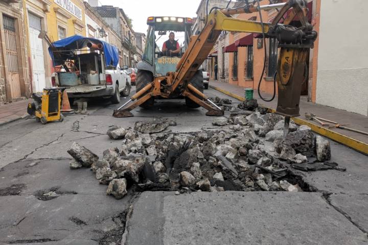 Ooapas repara socavón sobre la calle Abasolo