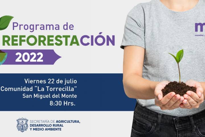 Dentro del Programa de Reforestación 2022 que la Secretaría de Agricultura, Desarrollo Rural y Medio Ambiente de Morelia (SADERMA), puso en marcha el pasado 9 de julio reforestando 5 mil árboles, se invita a la ciudadanía en general, ya sean organizaciones, asociaciones ambientalistas, instituciones y/o público en general que deseen unirse a la próxima reforestación que se llevará a cabo el día viernes 22 de julio a las 8:30 horas en la...