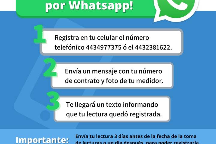 El registro de la lectura del medidor de agua es indispensable para conocer los consumos reales y generar un cobro correcto por parte del Organismo Operador de Agua Potable, Alcantarillado y Saneamiento de Morelia (OOAPAS), por ello, se les invita a los usuarios a proteger sus cuadros de toma y dejarlos visibles o accesibles al personal para poder tomar la lectura. Incluso se pueden conocer con anticipación las fechas en las que trabajadore...