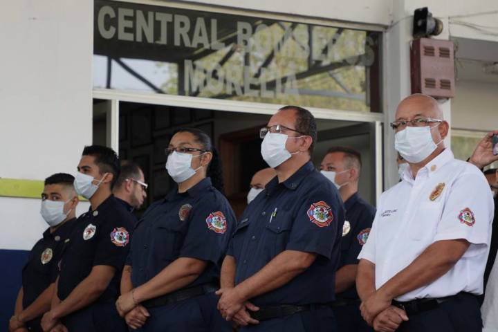 NOTICIAS 04/07/2022Alfonso Martínez destina recursos sin precedentes para equipamiento de Bomberos de Morelia Con la finalidad de continuar brindando todas las herramientas necesarias a las áreas operativas de la administración municipal que encabeza el presidente, Alfonso Martínez Alcázar, este lunes se realizó la entrega de 55 equipos estructurales completos para el cuerpo de bomberos de Morelia, así como un compresor que servirá para llenar los tanques de oxígeno.