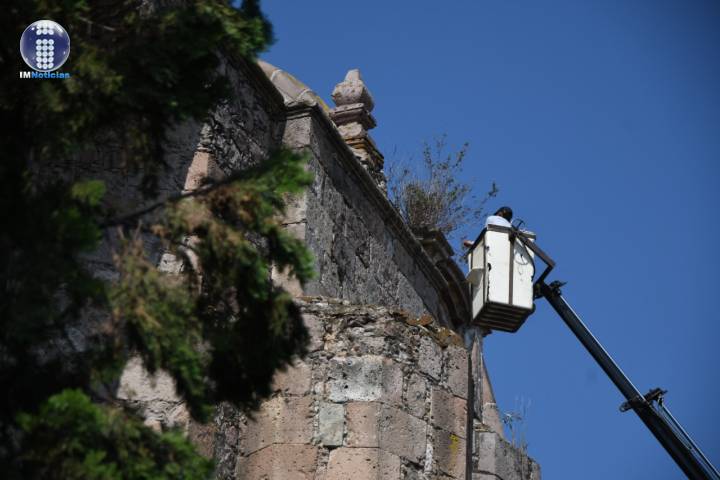 NOTICIAS 16/05/2022Gerencia del Centro Histórico arranca programa "Retiro de flora nociva"Con la finalidad de atender y mantener el cuidado de inmuebles patrimonio cultural de la humanidad, la Gerencia del Centro Histórico arrancó el programa "Retiro de flora nociva" en la cara norte del Templo de San Agustín, trabajo en el cual se realizaron labores con la grúa de brazo largo de la Secretaría de Servicios Públicos.