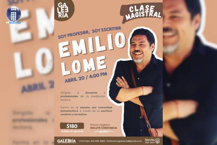 NOTICIAS 11/04/2022Emilio Lome dará clase magistral en Morelia El Colegio de Morelia informa que el ganador del Premio Bellas Artes de Cuento Infantil, Emilio Lome, orientará con clase magistral a las y los docentes de Morelia a hacer de la escritura creativa, una herramienta lúdica y lingüística en el aula.