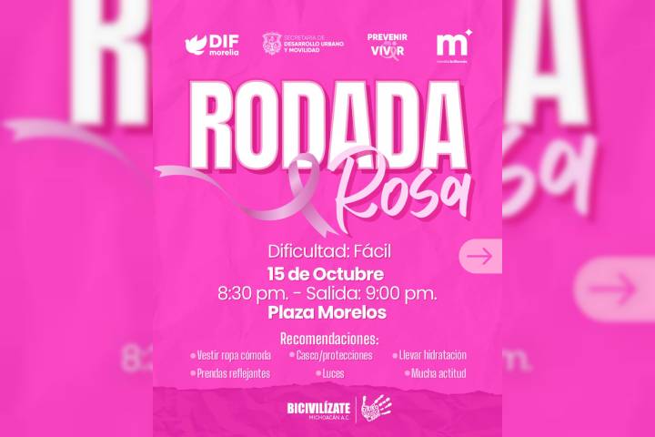 NOTICIAS 14/10/2025Invita Sedum a Rodada Rosa en concientización del cáncer de mama En el marco del Día Mundial de la Concientización sobre el Cáncer de Mama, el gobierno del presidente municipal, Alfonso Martínez Alcázar, a través de su Secretaría de Desarrollo Urbano y Movilidad (Sedum) y en coordinación con el DIF Morelia, invita a la ciudadanía a sumarse a la Rodada Rosa.