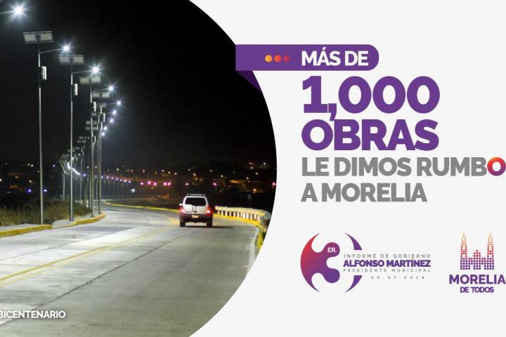 NOTICIAS 27/07/2018Con más y mejores obras públicas se dio rumbo a Morelia: Alfonso MartínezCon la eficiencia administrativa y la ejecución eficiente de recursos públicos que ha caracterizado al Gobierno Municipal Independiente, el Ayuntamiento de Morelia que encabeza el Alcalde Alfonso Martínez Alcázar ejecutó más de mil obras públicas en tres años de gestión, las cuales ya benefician a la ciudadanía y dieron rumbo al municipio en materia de salud, vialidad, seguridad, espacios recreativos y deportivos.