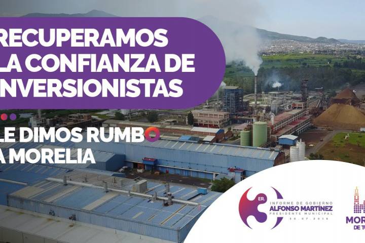 NOTICIAS 29/07/2018Con acciones en mejora regulatoria, Gobierno de Alfonso Martínez recuperó confianza de inversionistasMediante el Programa SIMPLIFICA, el Gobierno Independiente del Presidente Municipal de Morelia, Alfonso Martínez Alcázar, recuperó la confianza de los empresarios e inversionistas, para abrir nuevos negocios y empresas, favoreciendo así la economía y el empleo local, y con ello dando rumbo a Morelia en esta materia.