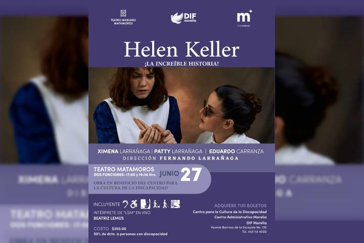En el marco del aniversario del nacimiento de Helen Keller, el DIF Morelia encabezado por la presidenta honoraria, Paola Delgadillo Hernández, presentará el próximo 27 de junio la obra teatral inspirada en la vida de esta ícono de la inclusión, con dos funciones en el Teatro Mariano Matamoros. El evento, que también conmemora el Día Internacional de las Personas Sordociegas, será a beneficio del Centro para la Cultura de la Discapacid...