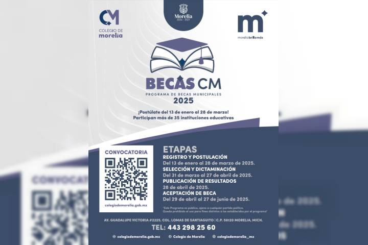 NOTICIAS 01/04/2025Supera respuesta de años anteriores, Convocatoria a Becas del Colegio de Morelia Como reflejo de la voluntad de morelianas y morelianos por tener una mejor preparación, asà como del apoyo del gobierno del presidente municipal, Alfonso MartÃnez Alcázar, para que alcancen su máximo grado de estudios, la convocatoria de Becas del Colegio de Morelia se superó a sà misma este 2025 con un registro de 2 mil 500 aspirantes.