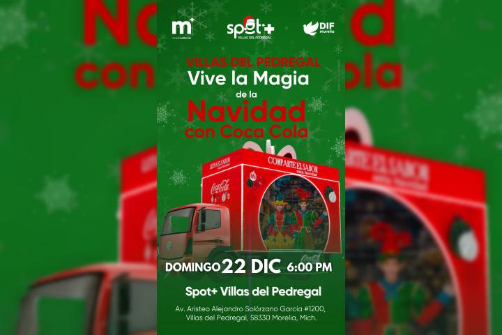 NOTICIAS 21/12/2024"Camión de la Felicidad" llevará magia navideña a Spot+ Villas del Pedregal del DIF Morelia Este domingo 22 de diciembre, el centro Spot+ Villas del Pedregal se llenará de magia navideña con la llegada del emblemático "Camión de la Felicidad" de Coca-Cola. Este evento, impulsado por el Gobierno del Presidente Municipal, Alfonso Martínez Alcázar, y el DIF Morelia, que encabeza la Presidenta Honoraria, Paola Delgadillo Hernández, busca llevar alegría y momentos inolvidables a las familias morelianas del poniente de la ciudad.