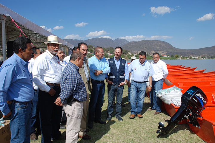 El secretario de Desarrollo Rural estatal, Jaime Rodríguez López, participó en la entrega de apoyos pesqueros y en la Firma de Convenio 2015, que beneficiará a las y los pescadores del lago de Cuitzeo, de los estados de Michoacán y Guanajuato.