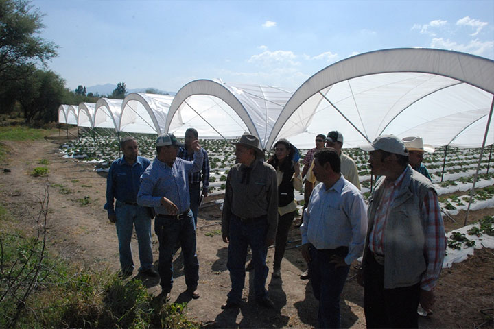 NOTICIAS 29/10/2014Entrega Sagarpa apoyos a productores del BajíoEn gira de trabajo por esta región el delegado de la Secretaría de Agricultura, Ganadería, Desarrollo Rural, Pesca y Alimentación (SAGARPA), Pedro Luis Benítez Vélez, entregó apoyos por más de cuatro millones de pesos, a productores de la región para fomentar la producción de fresa, así como la capacidad de almacenamiento de granos como maíz, sorgo y trigo.