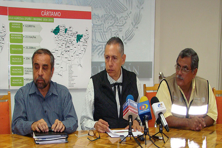 NOTICIAS 07/10/2014Busca Sagarpa triplicar el cultivo del cártamoEn rueda de prensa, el delegado de la Secretaría de Agricultura, Ganadería, Desarrollo Rural, Pesca y Alimentación (SAGARPA) en Michoacán, Pedro Luis Benítez Vélez, dio a conocer que en reunión celebrada en México, planteo la necesidad de impulsar fuertemente el cultivo del cártamo y avena en nuestro estado, como una alternativa para mejorar los ingresos de productores de granos, quienes de manera cíclica sufren de la caída del precio ... Ver más...