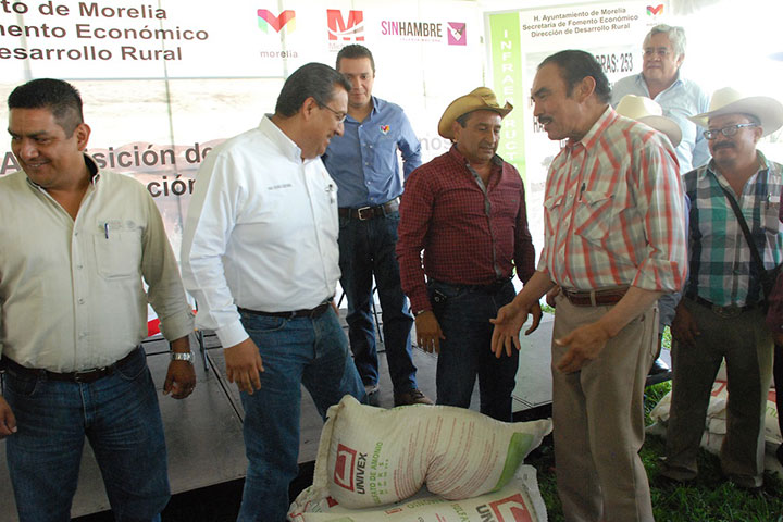 Acatando la instrucciones del gobernador Salvador Jara Guerrero, de no perder ni un minuto para dar continuidad a los programas del Gobierno del Estado, el secretario de Desarrollo Rural, Jaime RodrÃguez López; el director de Agricultura, Héctor Rojas Romero y el alcalde de Morelia Wilfrido Lázaro Medina, entregaron 385 toneladas de fertilizante quÃmico a productores de este municipio.