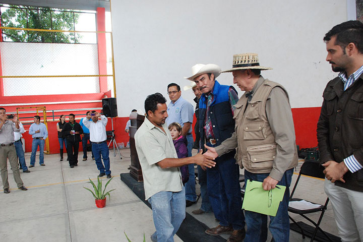 Para que las familias de escasos recursos puedan potenciar su producción con fines de comercialización y con ello mejorar sus ingresos, Ricardo Aguilar Castillo, subsecretario de Alimentación y Competitividad de la SAGARPA; Jaime RodrÃguez López, secretario de Desarrollo Rural y Pedro Luis BenÃtez Vélez, delegado de SAGARPA en la entidad, entregaron apoyos del programa Proyecto Estratégico de Seguridad Alimentaria (PESA), por 12.9 millo... Ver más...