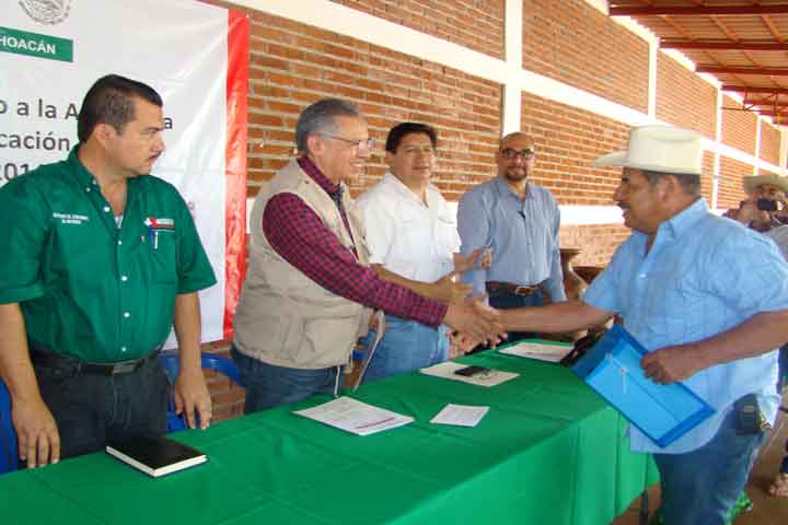 NOTICIAS 29/05/2014Entrega Sagarpa apoyos para tecnificación en Tierra CalienteCon la entrega de más de 20 millones de pesos, se tecnificarán más de mil 300 hectáreas de los municipios de Tepalcatepec, Buenavista Tomatlán, con lo que se fortalecerá la producción de cultivos de limón, lima, plátano, toronja, papaya, mango y pradera, aseguró el delegado de la Secretaría de Agricultura, Ganadería, Desarrollo Rural, Pesca y Alimentación (SAGARPA), Pedro Luis Benítez Vélez.