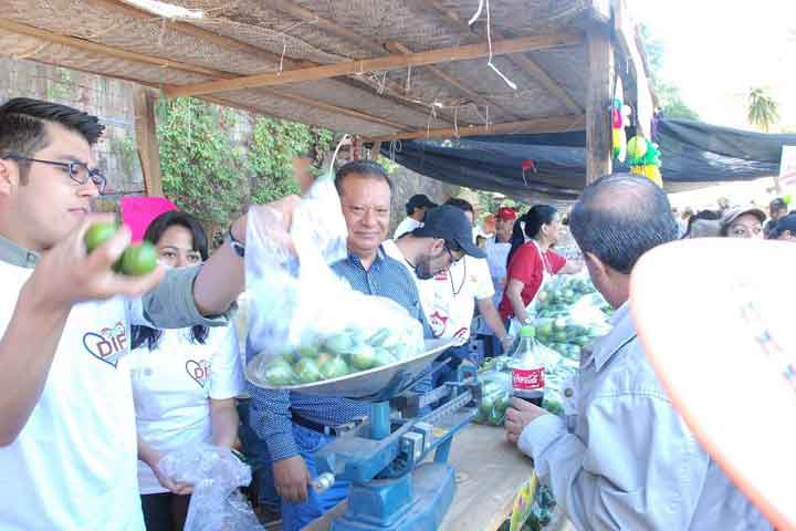 El secretario de Desarrollo Rural del estado, Ramón Cano Vega, informó que como muestra de solidaridad con las familias de la entidad, los productores de limón del Valle de Apatzingán ofertaron 2 mil 500 kilogramos de limón a 17 pesos por kilo, durante la Kermés del DIF 2014.