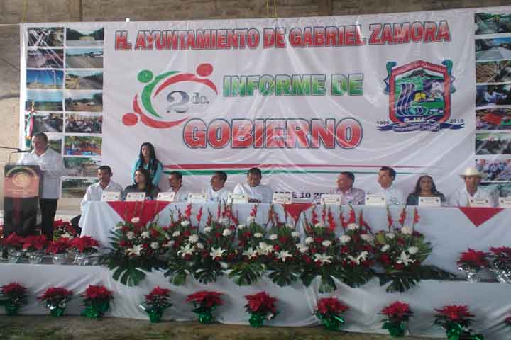 Con la representación del gobernador Fausto Vallejo Figueroa, el secretario de Desarrollo Rural del estado, Ramón Cano Vega, acudió, acompañado del delegado de Sagarpa en la entidad, Antonio Guzmán Castañeda al Segundo Informe de Gobierno, del presidente municipal de Gabriel Zamora, Jesús Borjas Infante, en el cual pudo constar el importante avance en los programas de trabajo, lo que ha impactado en la trasformación del municipio.