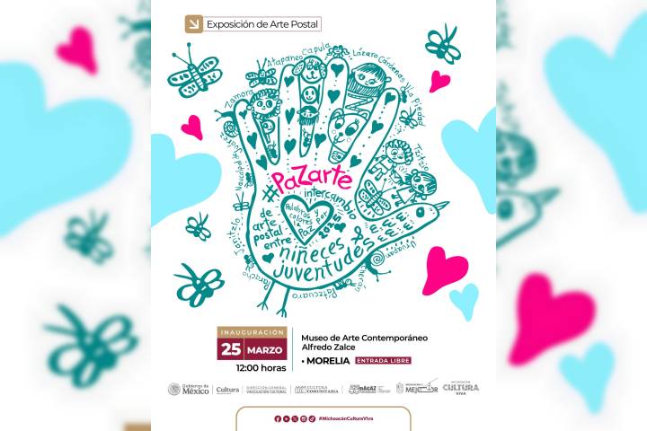 La Secretaría de Cultura de Michoacán (Secum) inaugurará en el Museo de Arte Contemporáneo Alfredo Zalce (MACAZ) la exposición de arte postal "PaZarte", un proyecto colaborativo que reúne el trabajo de los semilleros creativos, orientado a la formación, expresión y construcción de paz. La muestra abrirá al público el próximo 25 de marzo a las 12:00 horas en los jardines del MACAZ. La exposición presenta un total de 885 postale...