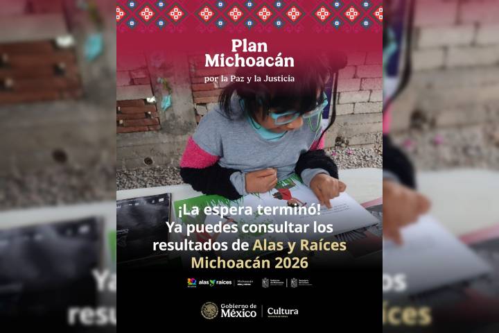 Las secretarías de Cultura estatal y federal dieron a conocer los resultados de la convocatoria para integrar la Programación Artística y Cultural de Alas y Raíces Michoacán 2026, una iniciativa que se articula dentro del Plan Michoacán por la Paz y la Justicia, con el objetivo de fortalecer los procesos comunitarios y garantizar el acceso a los derechos culturales de niñas, niños y adolescentes. En total se seleccionaron 32 prop...