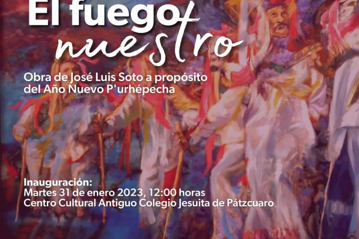 NOTICIAS 08/02/2023Invita Secum a la exposición del muralista José Luis Soto González En el marco de la celebración del Año Nuevo Purépecha o Kurikaveri Kuinchekua, la Secretaría de Cultura de Michoacán (Secum) invita este 10 de febrero al recorrido de la exposición "El Fuego Nuestro", en compañía de su autor José Luis Soto González, en el Centro Cultural Antiguo Colegio Jesuita (CCACJ).