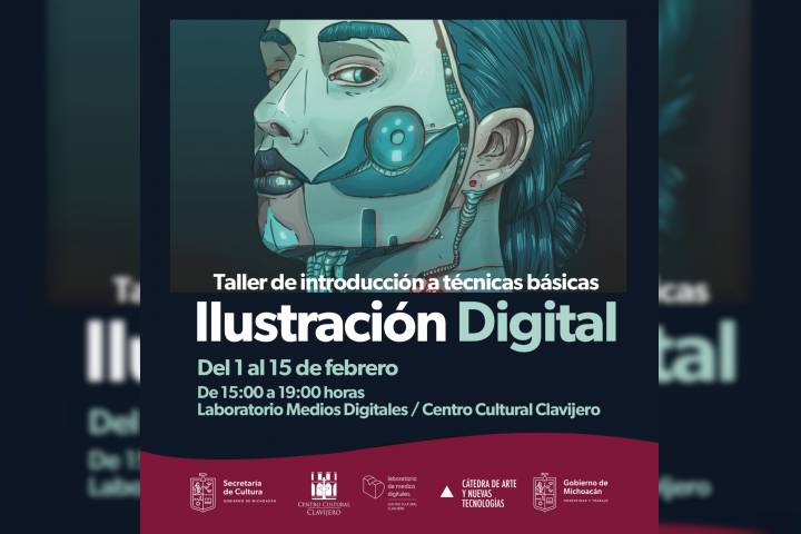NOTICIAS 28/01/2023Centro Cultural Clavijero abre taller de ilustración digital Con el respaldo de la Secretaría de Cultura de Michoacán (Secum), el Centro Cultural Clavijero (CCC) ofrece el taller de introducción a técnicas básicas sobre Ilustración digital que se desarrollará del 1 al 15 de febrero del presente año.