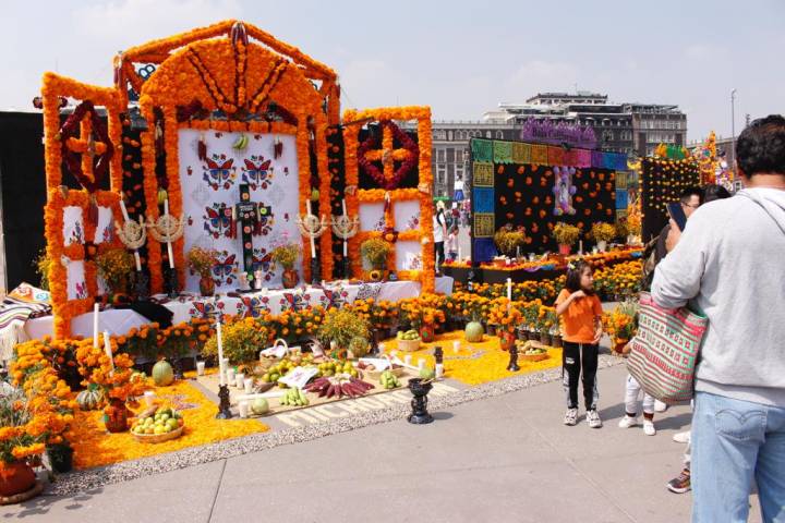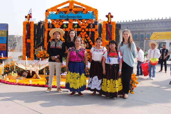 NOTICIAS 31/10/2022Michoacán presente en Ofrenda Monumental del ZócaloLa Secretaría de Cultura del Gobierno de México, en conjunto con más de 180 artesanos y representantes de las 32 entidades presentan la ofrenda monumental en el Zócalo capitalino con apoyo de la Dirección General de Culturas Populares, Indígenas y Urbanas del Gobierno de México. Michoacán se hace presente con el altar elaborado por el artesano p'urhépecha Edgar Alejandre Pérez y su colectivo de la comunidad indígena de Santa Fe de la L... Ver más...