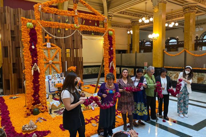 El altar inspirado en la tradición p'urhépecha de la comunidad de Santa Fe de la Laguna, fue dedicado a la pintora María Cenobia Izquierdo Guti... Ver más...