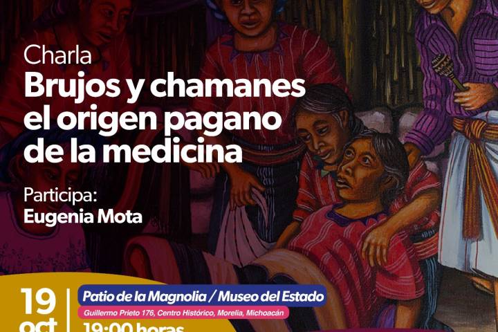 NOTICIAS 18/10/2022Museo del Estado ofrece charla sobre los orígenes de la medicina tradicionalCon el apoyo de la Secretaría de Cultura estatal (Secum), el Museo del Estado de Michoacán (MEM), a través de su programa continuo "Miércoles de Arte, Historia y Tradición Popular", ofrecerá la charla "Brujos y chamanes, el origen pagano de la medicina" con Eugenia Mota, el 19 de octubre, a las 19:00 horas, con entrada gratuita.