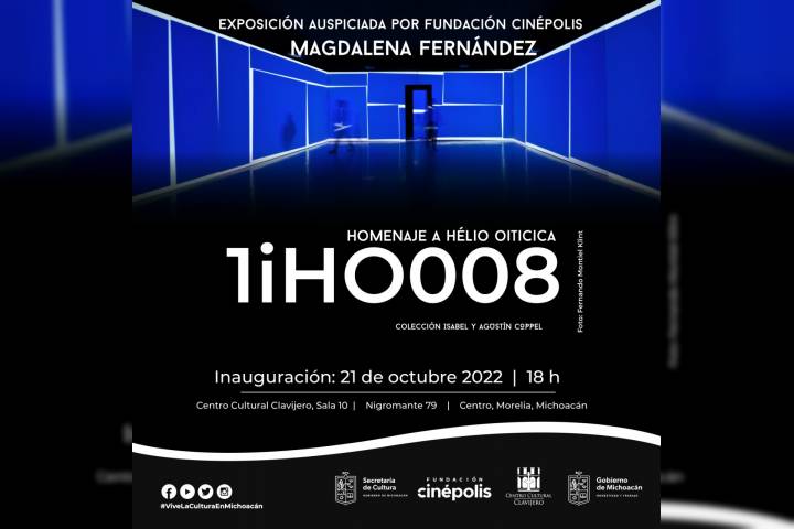 NOTICIAS 21/10/2022Exhibirá Centro Cultural Clavijero dos proyecciones de Magdalena Fernández El Centro Cultural Clavijero (CCC), con el apoyo de la Secretaría de Cultura de Michoacán (Secum) y el auspicio de Fundación Cinépolis, será sede del Festival Internacional de Cine de Morelia (FICM), al exhibir dos proyecciones de la artista Magdalena Fernández, 2iPM009 y 1iHO008 "Homenaje a Hélio Oiticica".