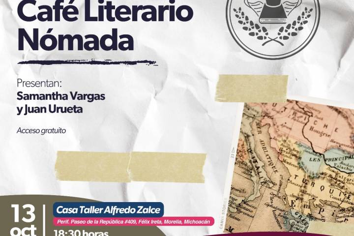 NOTICIAS 10/10/2022 Café Literario Nómada llegará a Casa Taller Alfredo Zalce El disfrute del café y de los libros se combina en el proyecto que la SecretarÃa de Cultura de Michoacán (Secum) apoya a través del Departamento de Literatura y Fomento a la Lectura, bajo el nombre Café Literario Nómada, iniciativa ciudadana, que llegará a Casa Taller Alfredo Zalce, el próximo 13 de octubre, a las 18:30 horas.