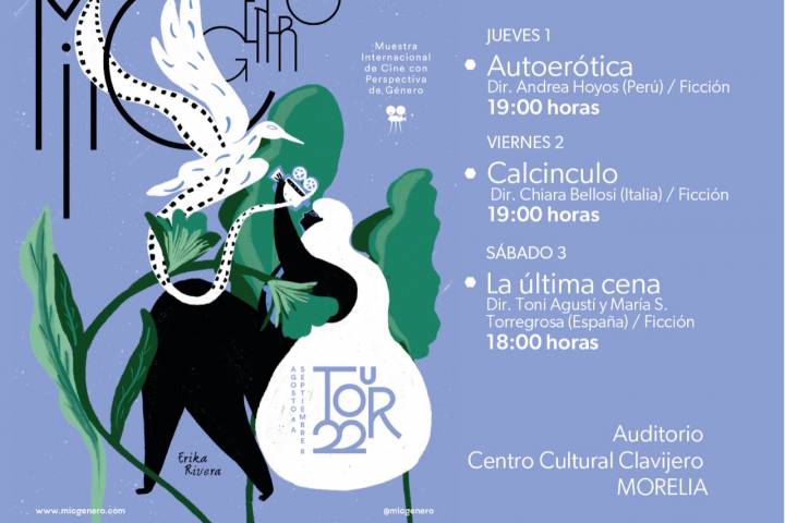 NOTICIAS 30/08/2022Centro Cultural Clavijero recibirá la 11ª edición de MICGénero La Secretaría de Cultura de Michoacán (Secum), a través del Departamento de Cine, invita a la 11ª edición de la Muestra Internacional de Cine con Perspectiva de Género MICGénero, que se proyectará en el Auditorio del Centro Cultural Clavijero, del 1 al 3 de septiembre, a las 19:00 horas.