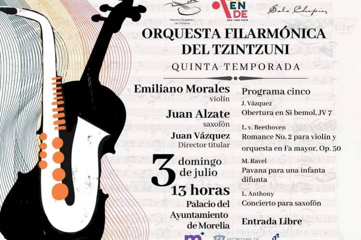 NOTICIAS 01/07/2022Invita SeCultura a concierto de la Orquesta Filarmónica del Tzintzuni La Secretaría de Cultura de Morelia, invita al público en general a asistir al concierto final de la Quinta temporada de la Orquesta Filarmónica del Tzintzuni, el cual se llevará a cabo este domingo 3 de julio en el patio del Ayuntamiento de Morelia. El acceso será libre.