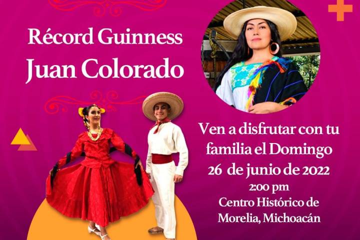 NOTICIAS 24/06/2022SeCultura de Morelia invita a participar en Récord Guinness "Juan Colorado" Con la finalidad de lograr el Récord Guinness al son de "Juan Colorado", la Secretaría de Cultura de Morelia invita a todas y todos los ciudadanos a participar en este evento que se llevará a cabo el próximo domingo 26 de junio en el Centro Histórico de la ciudad, a las 2:00 de la tarde.