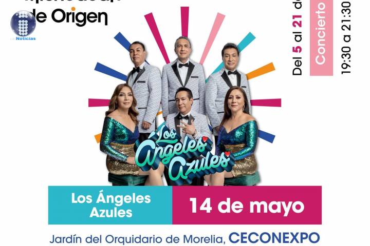 NOTICIAS 09/05/2022Los Ángeles Azules entregarán las maravillas de la vida en el Festival Michoacán de OrigenEl Festival Michoacán de Origen vivirá una ?entrega de amor' con Los Ángeles Azules, que llegan a Morelia el próximo 14 de mayo, para lograr que las mujeres ?suelten el listón de su pelo', y los hombres, le entreguen esas '20 rosas' a su ser amado.