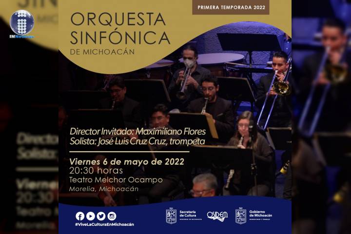NOTICIAS 02/05/2022El trompetista José Luis Cruz Cruz se presenta con la Orquesta Sinfónica de MichoacánEste viernes, 06 de mayo, a las 20:30 horas, la Orquesta Sinfónica de Michoacán (OSIDEM) proseguirá con su primera temporada de conciertos 2022, con la participación de Maximiliano Flores como director invitado y del trompetista José Luis Cruz Cruz como solista.