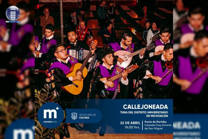 NOTICIAS 21/04/2022Este viernes, la Calzada Fray Antonio de San Miguel será el escenario de la CallejoneadaLa Calzada Fray Antonio de San Miguel se llenará de música este viernes 22 de abril, a las 19:00 horas, con la Callejoneada que la Secretaría de Cultura de Morelia (SeCultura), ha preparado para habitantes y turistas que aún se encuentren disfrutando de la ciudad de la Cantera Rosa.