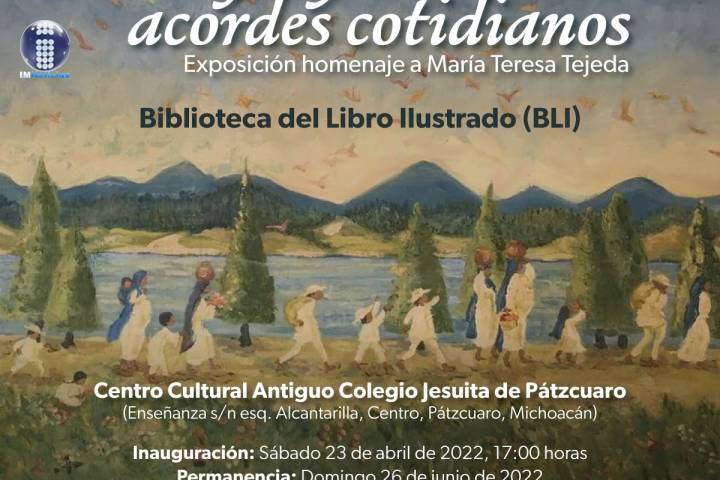 NOTICIAS 25/04/2022El Centro Cultural Antiguo Colegio Jesuita inaugura "Dibujos y Acordes Cotidianos" Para hacer un homenaje a la artista visual y música María Teresa Tejeda Ramos, quien por 20 años impartió clases en Pátzcuaro, este sábado se inauguró la exposición "Dibujos y Acordes Cotidianos" en la Biblioteca del Libro Ilustrado (BLI), en colaboración con el Centro Cultural Antiguo Colegio Jesuita (CCACJ) y con el apoyo de la Secretaría de Cultura de Michoacán (SECUM).