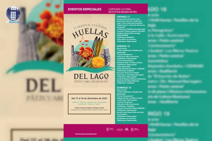 NOTICIAS 14/12/2021Centro Cultural Antiguo Colegio Jesuita de Pátzcuaro presenta la primera edición del Festival Huellas del Lago El Centro Cultural Antiguo Colegio Jesuita de Pátzcuaro (CCACJ) presentará del 17 al 20 de diciembre el Festival Huellas del Lago, en su primera edición la cual expone diferentes manifestaciones de las artes visuales, teatro y música, así lo explicó Gabriela Molina Aguilar, titular de la política cultural en la entidad.