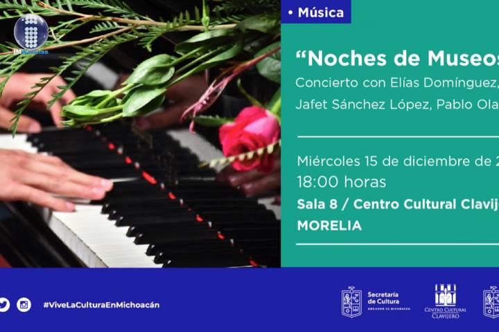 NOTICIAS 16/12/2021Concluye temporada "Noche de Museos", en Centro Cultural ClavijeroLa Secretaría de Cultura de Michoacán, a través del Centro Cultural Clavijero, cierra temporada de conciertos en colaboración con el Conservatorio de las Rosas, con el programa "Noches de Museos" el día de hoy a las 18:00 horas.