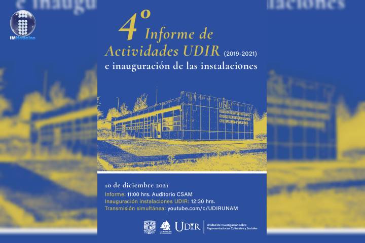 NOTICIAS 03/12/2021Nuevo edificio de la UDIR UNAM Morelia.El próximo viernes 10 de diciembre del 2021, la Dra. Mariana Masera, coordinadora de la Unidad de Investigación sobre Representaciones Culturales y Sociales UDIR UNAM, presentará el informe de actividades de los últimos tres años de la institución, así como sus nuevas instalaciones dentro del Campus UNAM en Morelia. Se contará con la presencia de la Coordinadora de Humanidades UNAM, la Dra. Guadalupe Valencia.