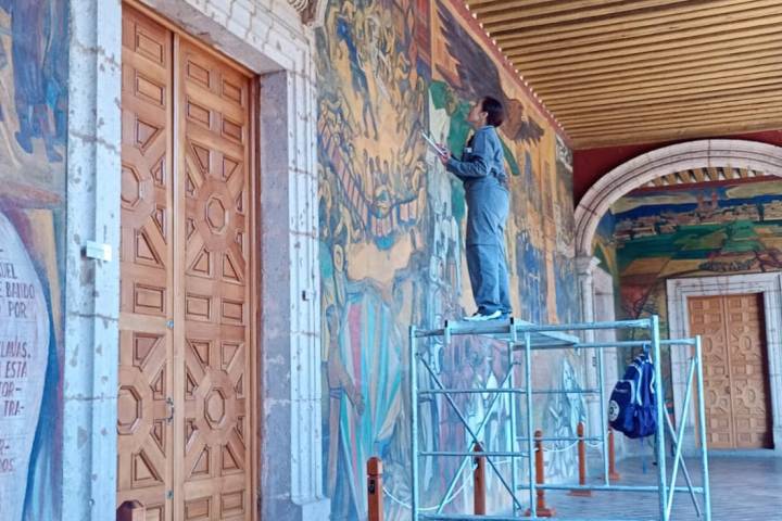 NOTICIAS 09/09/2025 Rescata Secum mural de Alfredo Zalce en Palacio de Gobierno del EstadoLa Secretaría de Cultura de Michoacán (Secum) llevó a cabo un proyecto de diagnóstico y limpieza del mural "Gente y Paisaje de Michoacán", creado en 1962 por el artista michoacano Alfredo Zalce y ubicado en el Palacio de Gobierno del Estado. La intervención, realizada por la restauradora María Fernanda Blázquez, devolvió la fuerza expresiva y el colorido a esta obra clave del patrimonio cultural del estado.