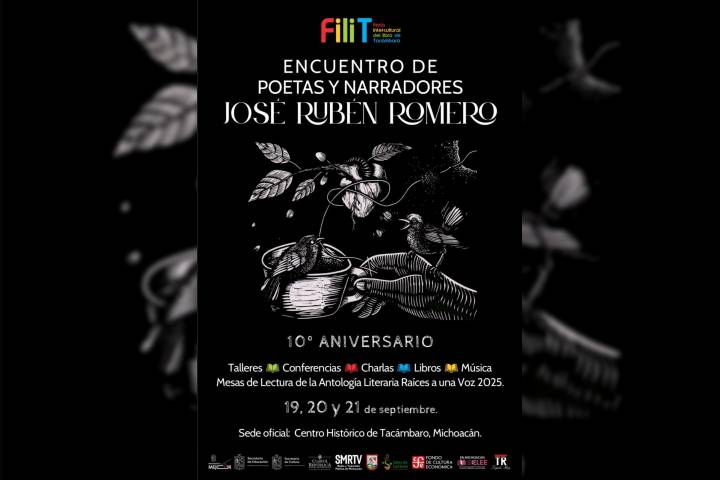 NOTICIAS 19/09/2025Tacámbaro celebra 10 años del Encuentro de Poetas y Narradores "José Rubén Romero"La Secretaría de Cultura de Michoacán (Secum) invita a disfrutar del Encuentro de Poetas y Narradores "José Rubén Romero", que celebra su décima edición del 19 al 21 de septiembre en el corazón de Tacámbaro, con actividades presenciales y virtuales abiertas a todo público.