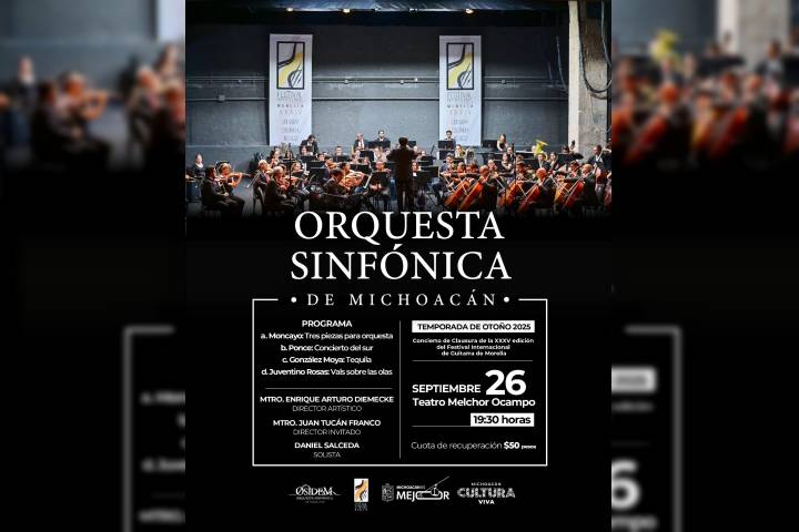 El cierre estará a cargo de la Orquesta Sinfónica de Michoacán (Osidem), bajo la batuta de Enrique Arturo Diemecke y Juan Tucán Franco, con la participación del guitarrista Daniel Salceda. La c... Ver más...