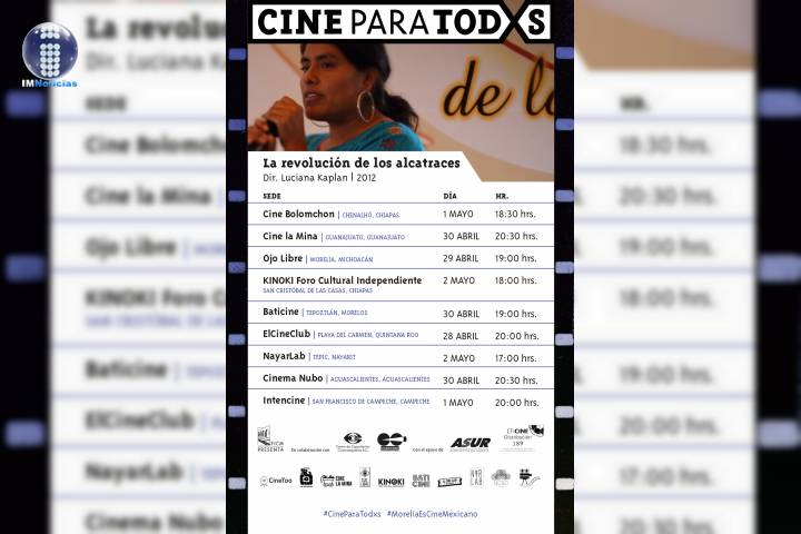 NOTICIAS 26/04/2021Cartelera semanal de Cine para todxsEl Festival Internacional de Cine de Morelia (FICM) presenta Cine para todxs, un programa de exhibición en espacios comunitarios de películas mexicanas que han formado parte de alguna de las ediciones del FICM.