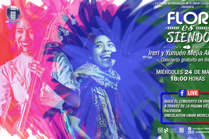 NOTICIAS 21/03/2021Las cantautoras Yunuén e Ireri Mejía Almonte presentarán el concierto "Flor es siendo"Como parte de las actividades organizadas por la UNAM Morelia durante marzo, por el Día Internacional de la Mujer, las hermanas cantautoras Yunuén e Ireri Mejía Almonte presentarán el concierto "Flor es siendo", el próximo miércoles 24 de marzo, a las 18:00 horas, de manera gratuita a través de la página de Facebook: Vinculación UNAM Morelia.