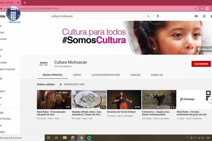 NOTICIAS 21/01/2021En YouTube, expresiones de la cultura michoacana Cultura Michoacán es el canal de YouTube que la Secretaría de Cultura de Michoacán (Secum), sigue utilizando para acercar sus contenidos digitales a toda la población, con el fin de que disfruten de las manifestaciones artísticas en este tiempo de permanecer en casa.