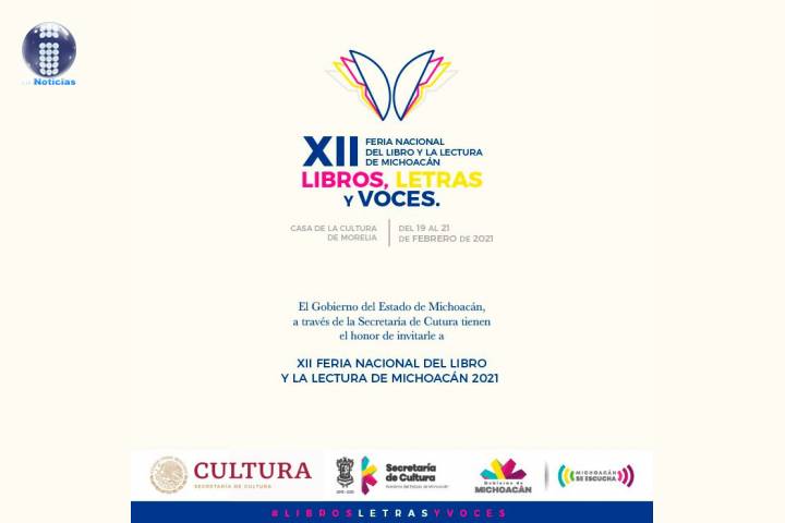 NOTICIAS 28/12/2020Invitan a participar en la Feria del Libro Michoacán La Secretaría de Cultura de Michoacán invita a creadores, editores, casas editoriales, distribuidores y promotores del libro, a participar como expositores en la XII Feria Nacional del Libro y la Lectura de Michoacán "Libros, letras y voces" (FNAL Michoacán), que se realizará del viernes 19 al domingo 21 de febrero de 2021, en la Casa de la Cultura de Morelia.