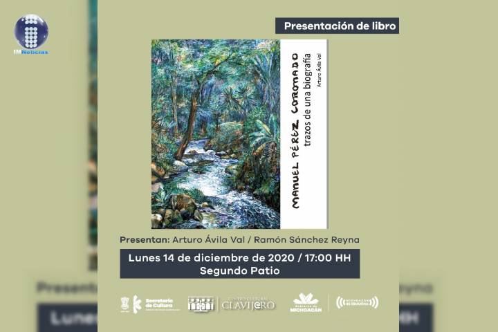 NOTICIAS 11/12/2020Presentarán libro sobre Mapeco en Clavijero Escrito en ocasión del 50 aniversario luctuoso del artista, el libro "Manuel Pérez Coronado: Trazos de una biografía", de Arturo Ávila Val, se presentará de forma presencial y virtual el 14 de diciembre, a las 5 de la tarde, en el segundo patio del Centro Cultural Clavijero.
